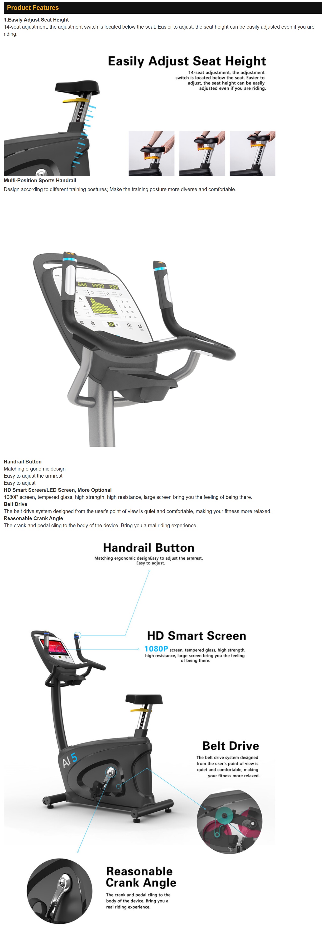 Some people like running, some people like riding. Everyone has own love of sports. So clubs must be equipped with varieties of equipment, but utilization rate is not high. Through the guidance of the lesson plan, members can try more of the fun of running and exercise bike. You can even incorporate more training forms, such as online group lessons and team competitions. The upright bike is not necessary equipment for personal training, but an important component of the smart curriculum. It will play an important role in the club.