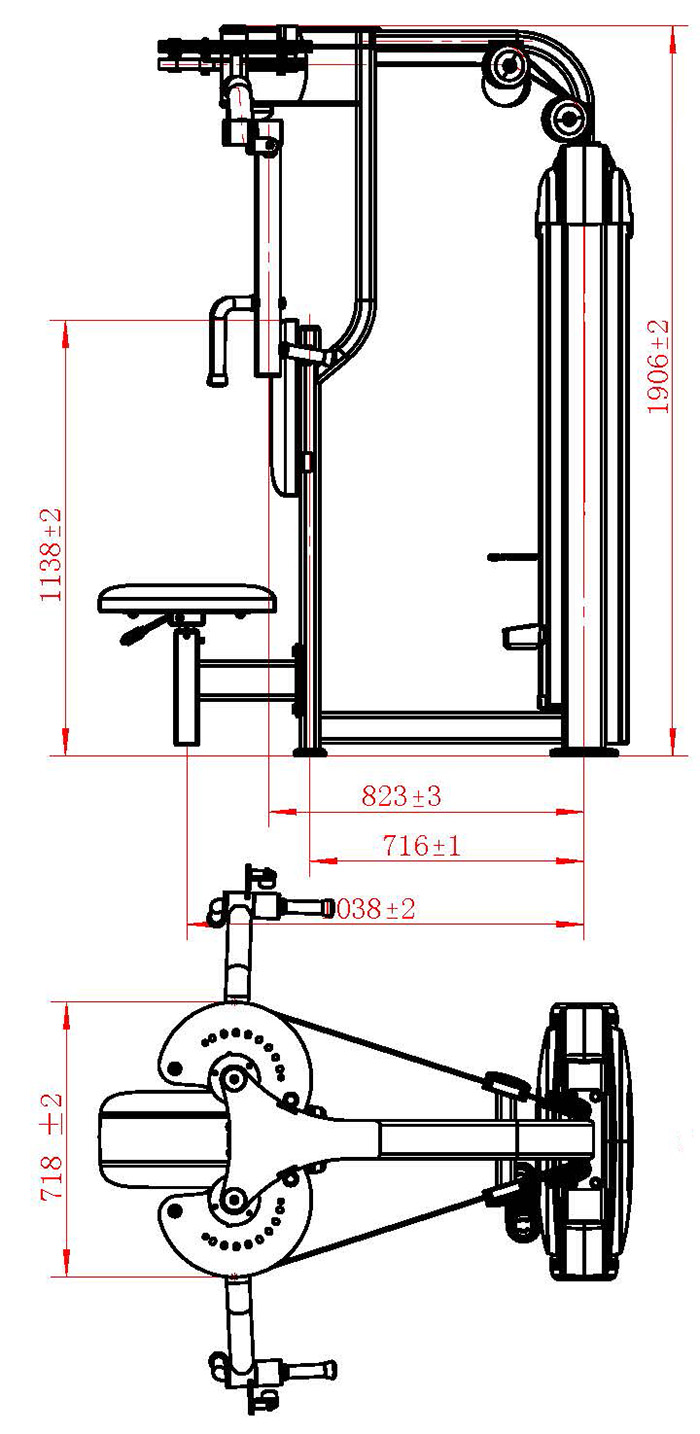 It is an exclusive product that mainly exercises the pectoralis major, latissimus dorsi, and assists in the exercise of the deltoid muscle. After adjusting the starting position and selecting the appropriate weight, the exerciser can achieve effective exercise of the chest muscles, back muscles, and arm strength through the adduction and abduction of the arms.