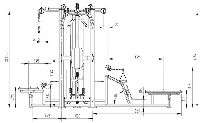 ● Unilateral design allows single or dual-arm exercise. Space efficient and moveable.